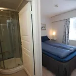 Rummen har privata badrum med en separat toalett och en dusch. Rummen har parkettgolv.